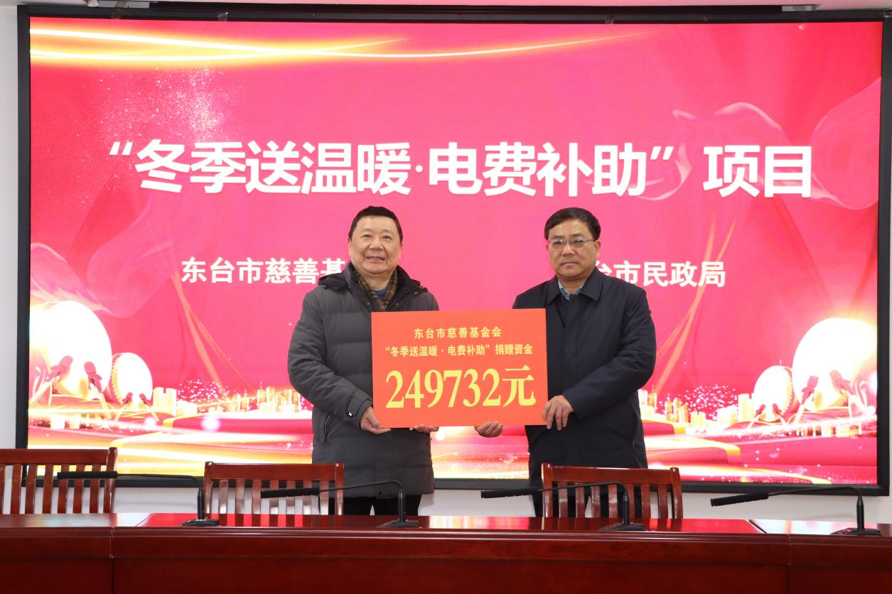 1月5日下午,东台市慈善基金会联合东台市民政局举行了“冬季送温暖·电费补助”启动仪式,东台市慈善基金会理事长郑静波,东台市民政局党委书记、局长朱凯等负责同志出席了该仪式。
